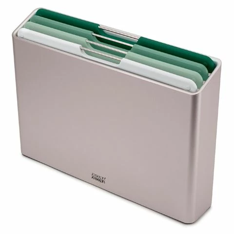 These four colour-coded chopping boards comes with a silver sleek slimline case. A beautifully organised set for your worktop.