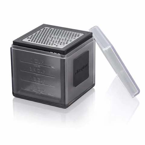 The Microplane Cube Cheese Graters provide three grater blades, fine, coarse, and ribbon, for your cooking and baking needs! With built-in catch and measure functionality for up to 1 ½ cups, this kitchen gadget is small but mighty!