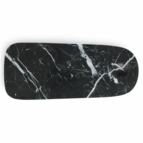The cutting utensils have a minimalistic, moulded expression, which still clearly conveys their function.The serving board in black marble has an organic shape and smoothed edges. A recess in the tray acts as a decorative detail and gives you a place to put your finger when lifting it off the table.