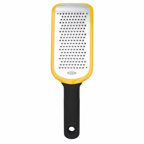 The OXO Good Grips Etched Medium Grater has an extra-sharp, etched stainless steel grating surface that cuts through dense and fibrous foods with ease.